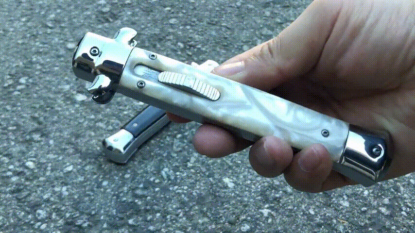 There’s no question that the Marbleized Stiletto Automatic OTF Knife will make a bold statement, coming in at 9” or 11" in overall length. The stiletto knife has a mirror-polished, 3 3/4” stainless steel blade with a razor-sharp edge and a penetrating point.